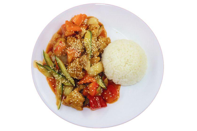 КОМ ЧУА НГОТ450 ₽Рис кусочками мяса на выбор курица/ мясо в кисло-сладком соусе с овощами.400гЗаказать
